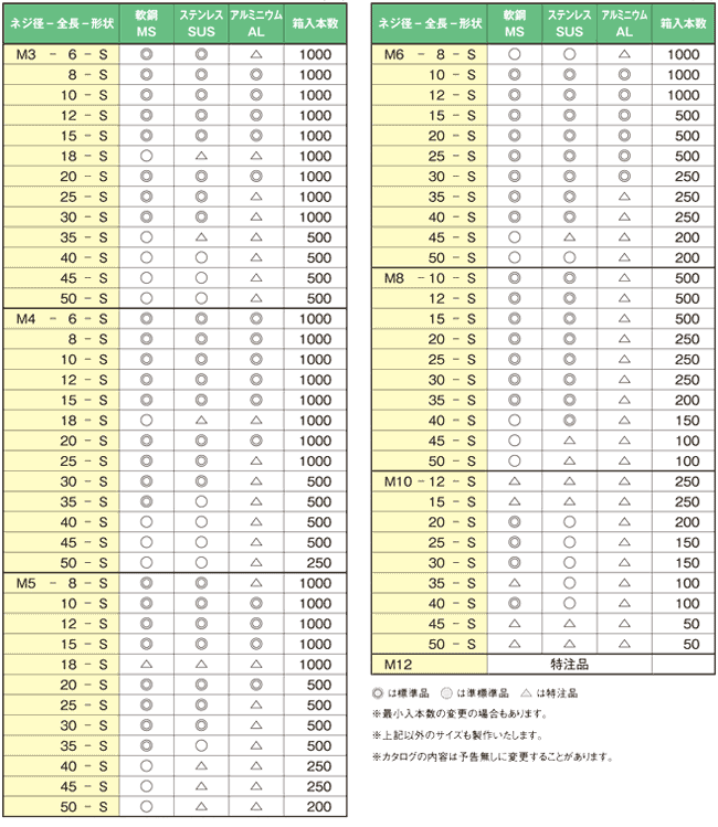 | M3 - 6 - S | ◎ | ◎ | △ | 1000 |